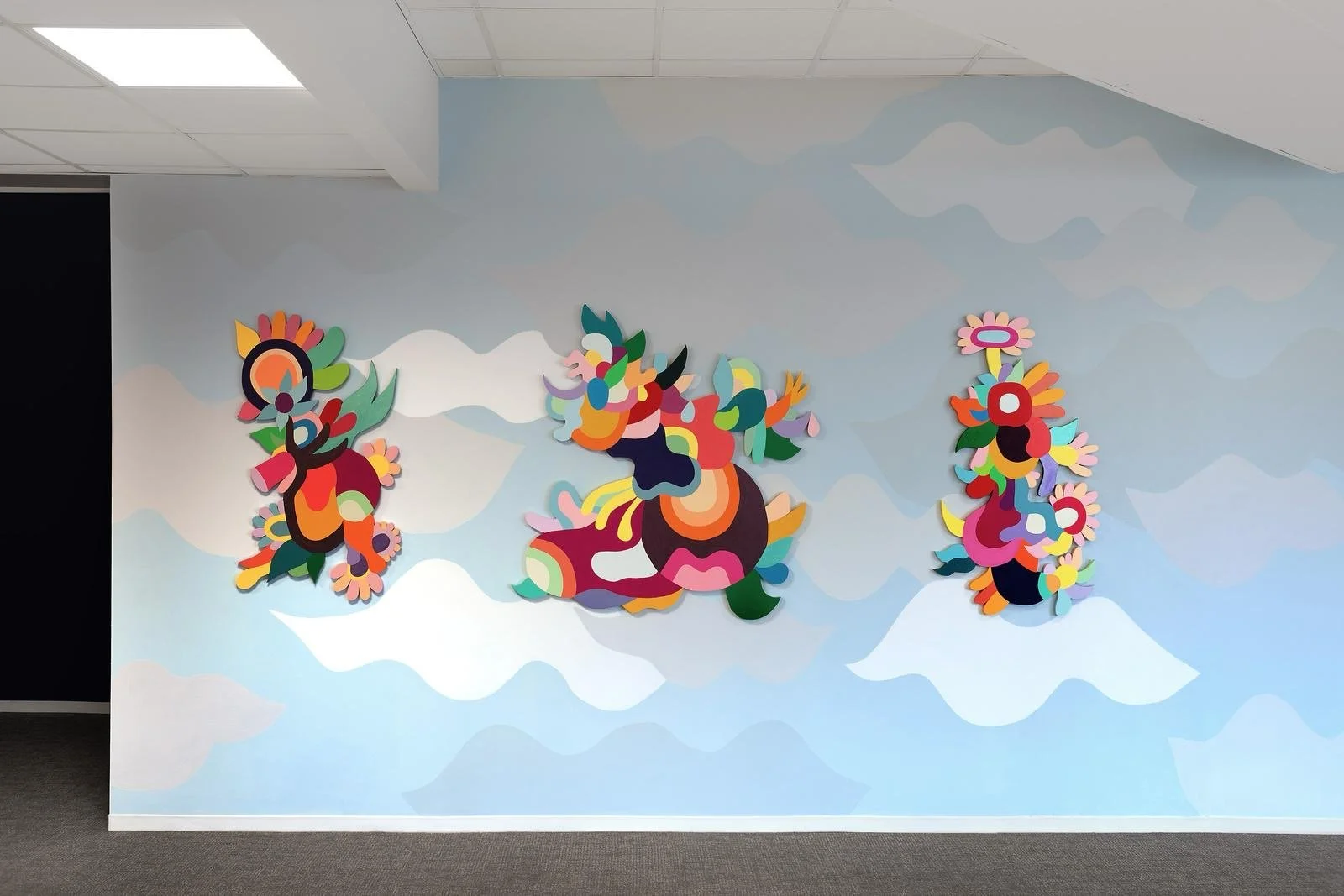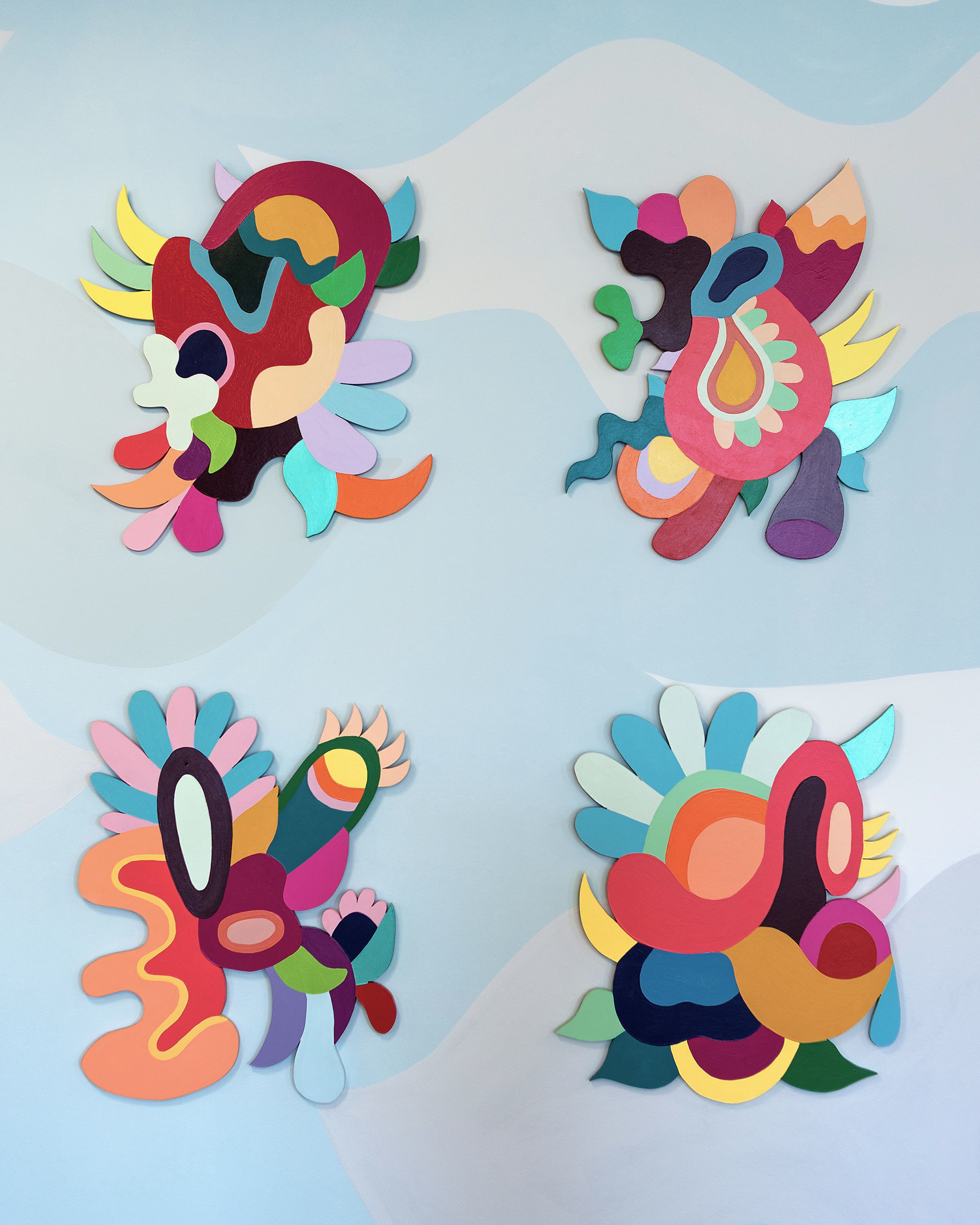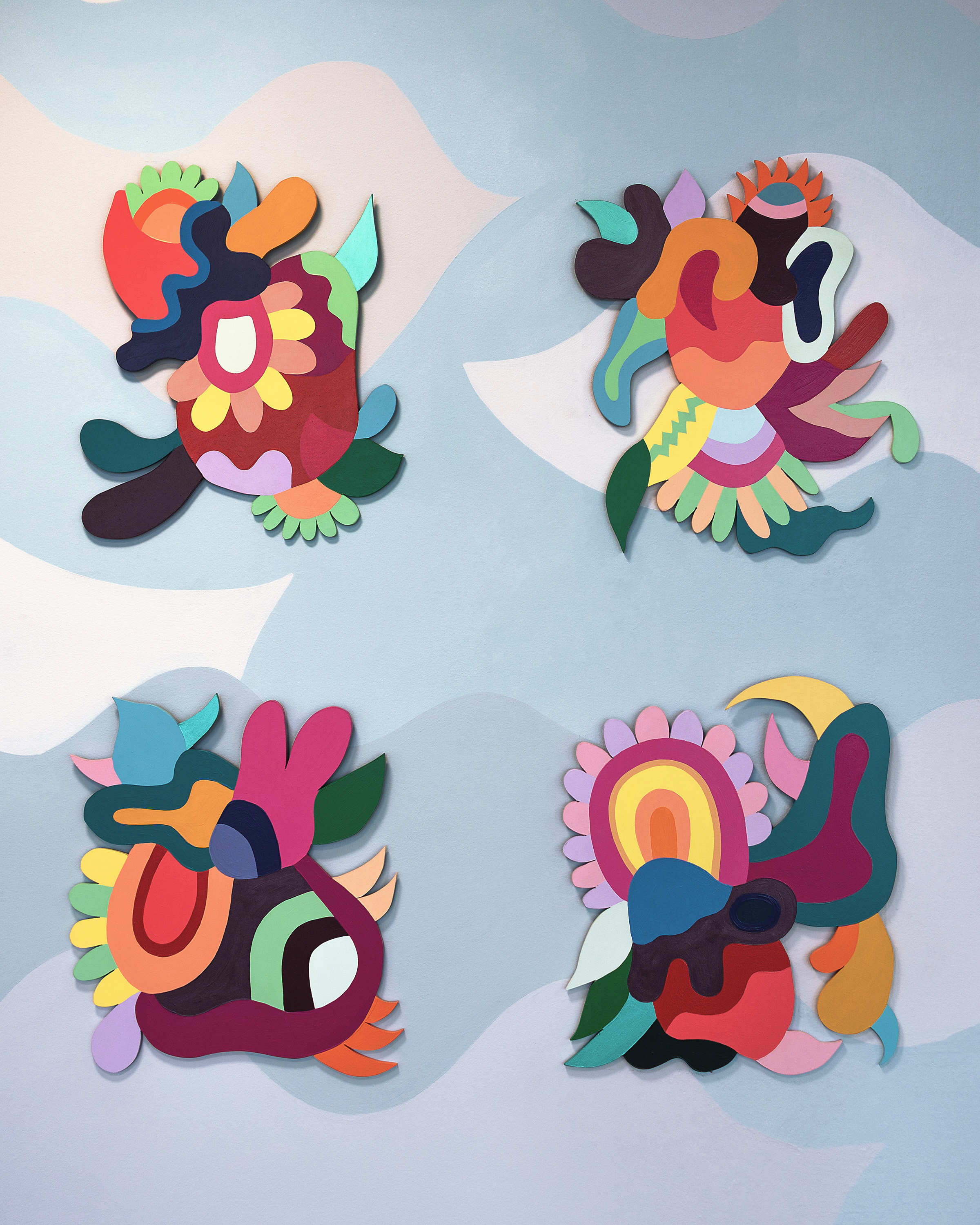 “Dino is one of the most original artists I’ve had the honor of working with. His emblems, amulets and talismanic shapes blend the sensibility of ancient hieroglyphics with a spirited and lush contemporary palette inspired by his Costa Rican roots. Importantly, his work willfully embraces the exuberance of the tropics without resorting to customary platitudes often found in “tropical art.” / Hannah Sloan