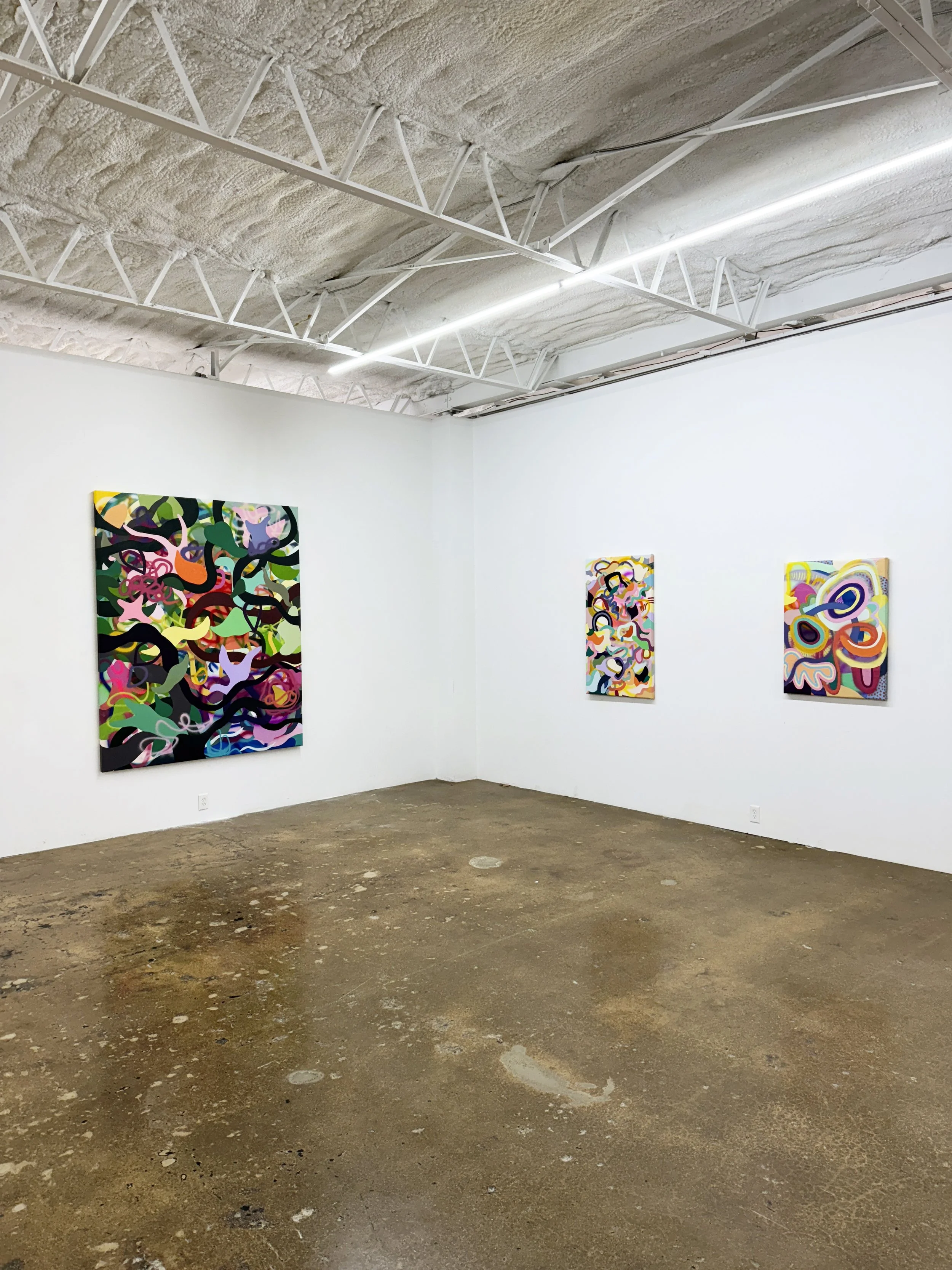 The Talisman painting series showcases 11 large paintings representing the abstract ecosystems of the Costa Rican jungle.